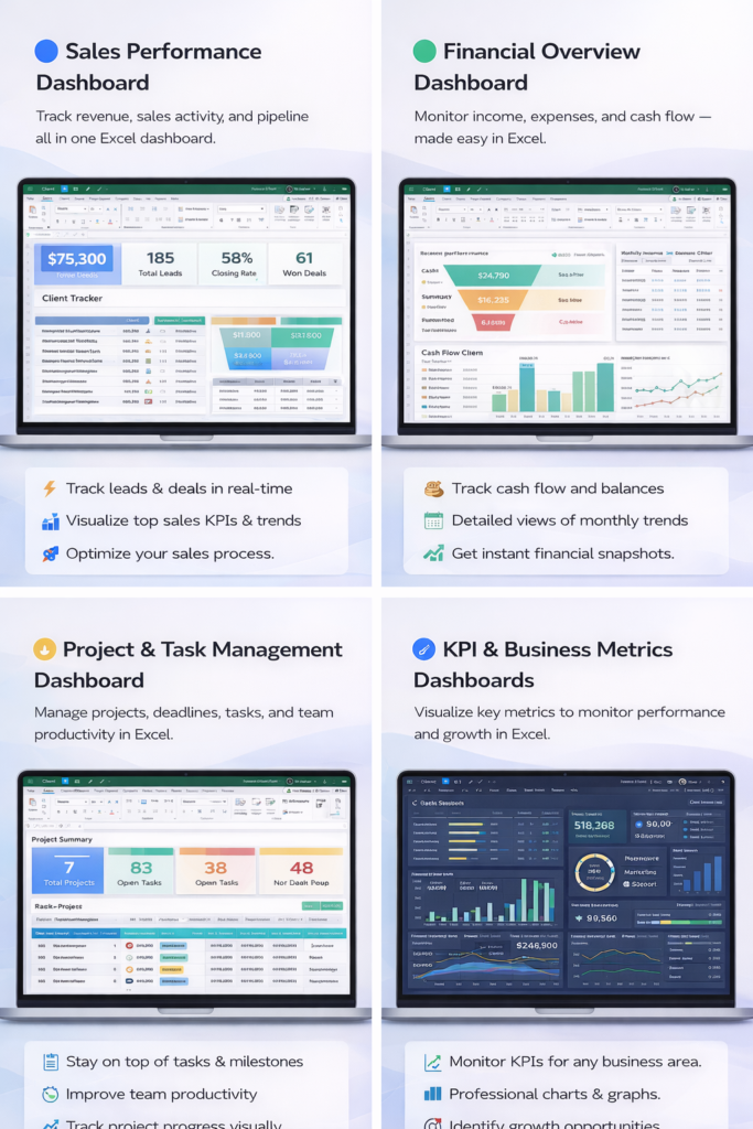 “This Excel bundle saved me so much time. Earlier I used 5–6 different sheets, now everything is in one dashboard. Very professional and easy to use.”
